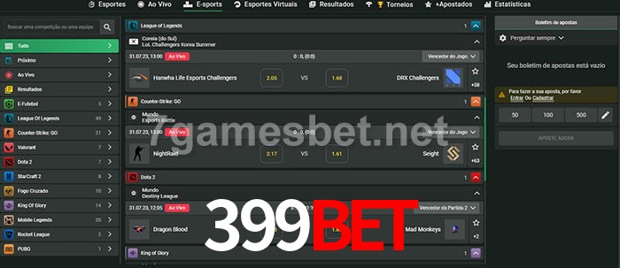O 399bet oferece uma grande seleção de opções de apostas em e-sports com probabilidades competitivas